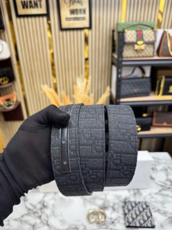CHRISTIAN DIO_R PREMIUM CD BELT & WALLET COMBO WITH BOX DUST BAG CARRY BAG D65-3 BLACK