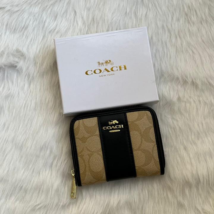 Coac_h Chelsea Stripe Zip Wallet Premium Quality With Box (Black) (AAAD15-1)