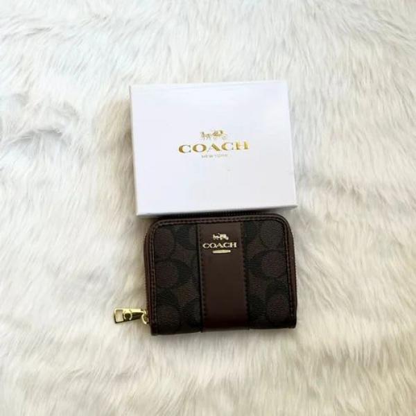 Coac_h Chelsea Stripe Zip Wallet Premium Quality With Box (Coffee) (AAAD15-1)