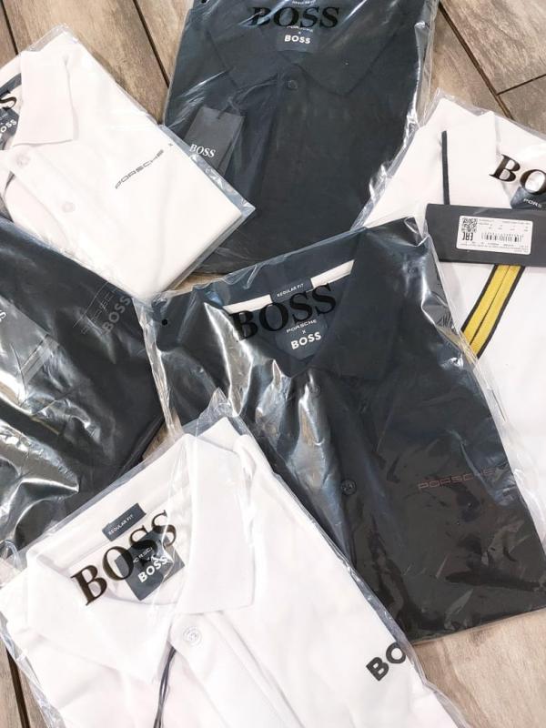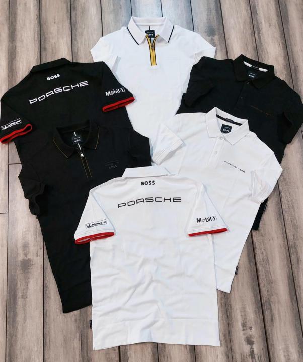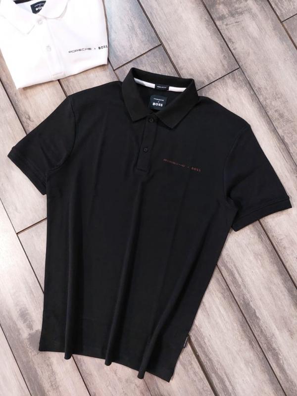 Hugo Bos s Black Premium Imported Compact Yarn 240 GSM Interlock Fabric Polo Tshirt with Emboss Logo 3420